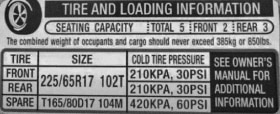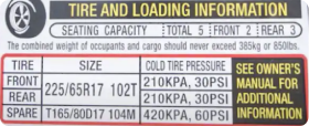 There are two places to find your tire size. Look directly on your tire sidewall or inside your driver’s side door jamb for your vehicle’s tire size.